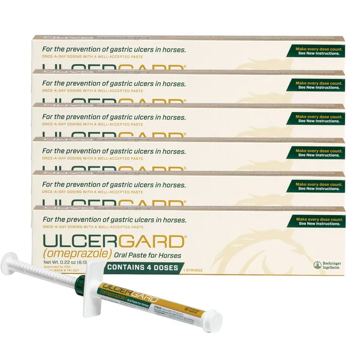 For the prevention of gastric ulcers in horses UlcerGard Equine Gastric Paste has 4 maintenance doses per tube, although for acute ulcer conditions one whole tube per day is recommended. With any medication, follow your vet’s protocol.